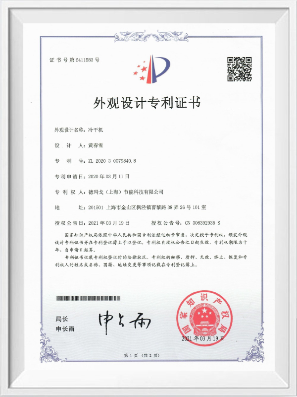 ใบรับรองสิทธิบัตรการออกแบบเครื่องเป่าเย็น